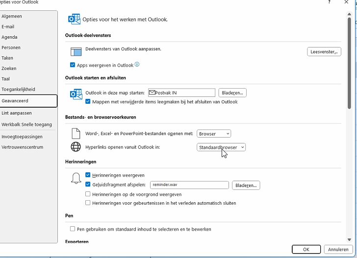 Bij het installeren van Windows 11 wordt in Outlook de browser waarin een link wordt geopend, op de achtergrond gewijzigd in Microsoft Edge. Ook als dit niet je standaardbrowser is.